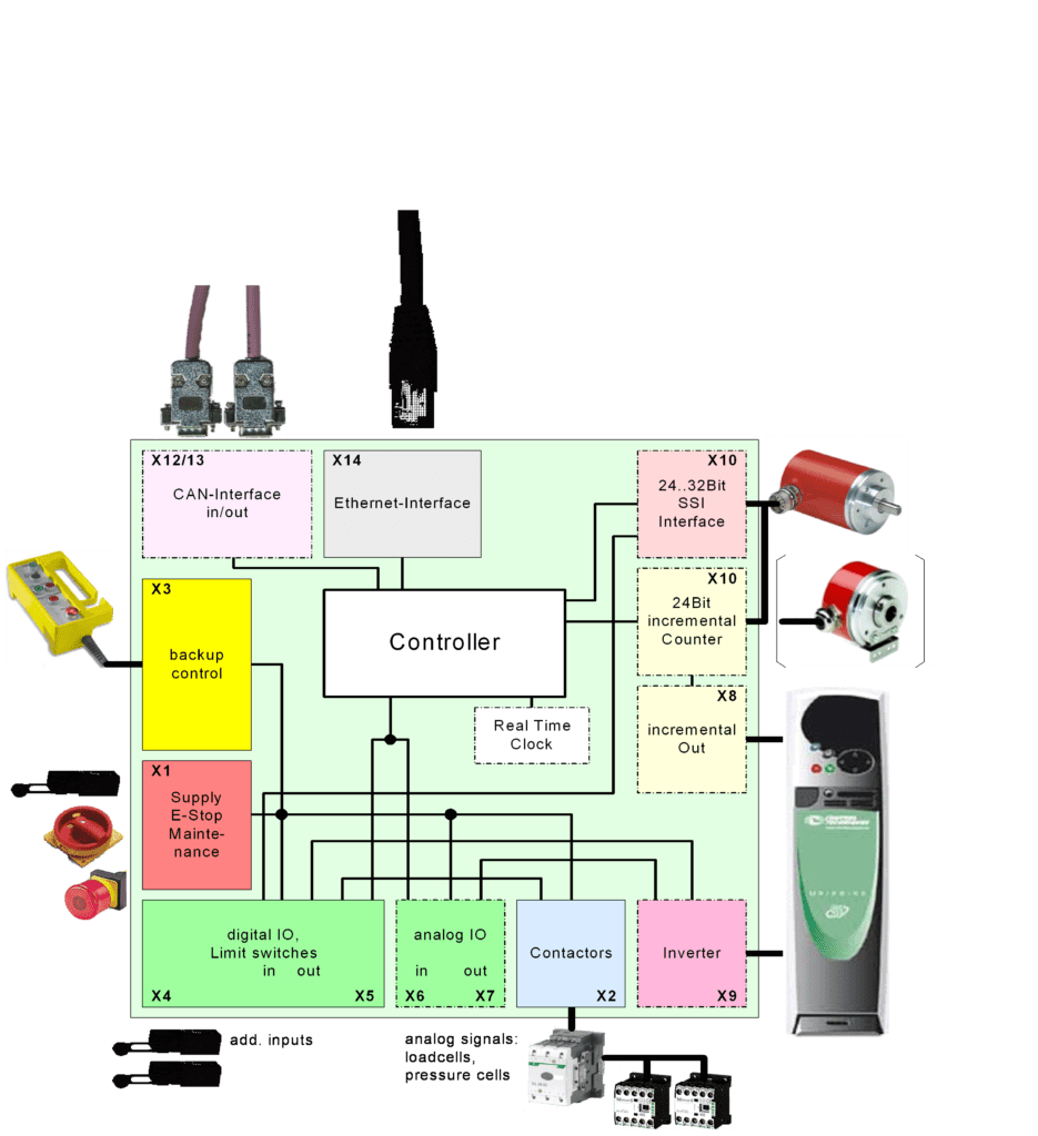 - SFU: Zweit-CPU, Prüfung der Haupt-CPU, mit CAN Netzwerk, IO, Absolut oder Inkremental Encoder